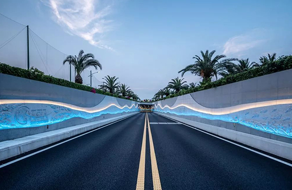 REEL PROJECT項(xiàng)目范圍:Project scope區(qū)域范圍圖博鰲通道工程包括1.45公里的隧道照明、文化墻照明,南北岸及無名島園林景觀、南岸ASIA 景觀小品、通道管理中心、以培蘭大橋?yàn)榇淼臅分苓厴蛄旱菳oao channel project includes 1.45km tunnel lighting, culture wall lighting, North and south bank and nameless island landscape, Asia landscape sketch on the south bank, channel management center, bridges around the site represented by Peilan bridge, etc完成日景圖設(shè)計(jì)分析:瓊之印象Design analysis連綿的山巒層層的浪花提取…